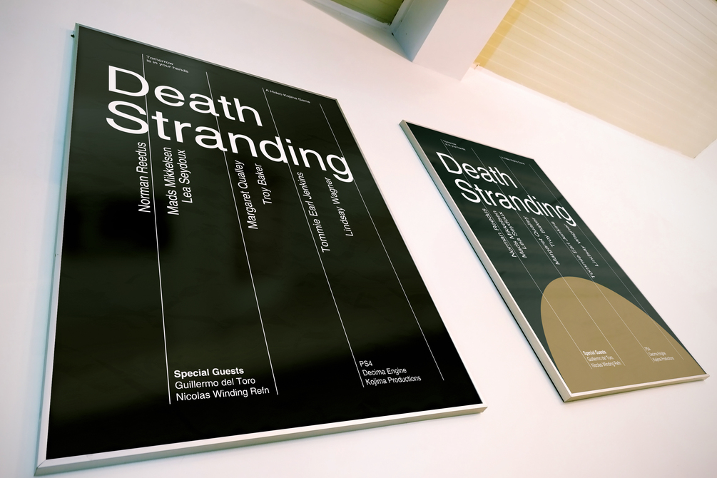 Our homage to Death Stranding, the new PlayStation game by Hideo Kojima, in a typographic poster format with Swiss style.