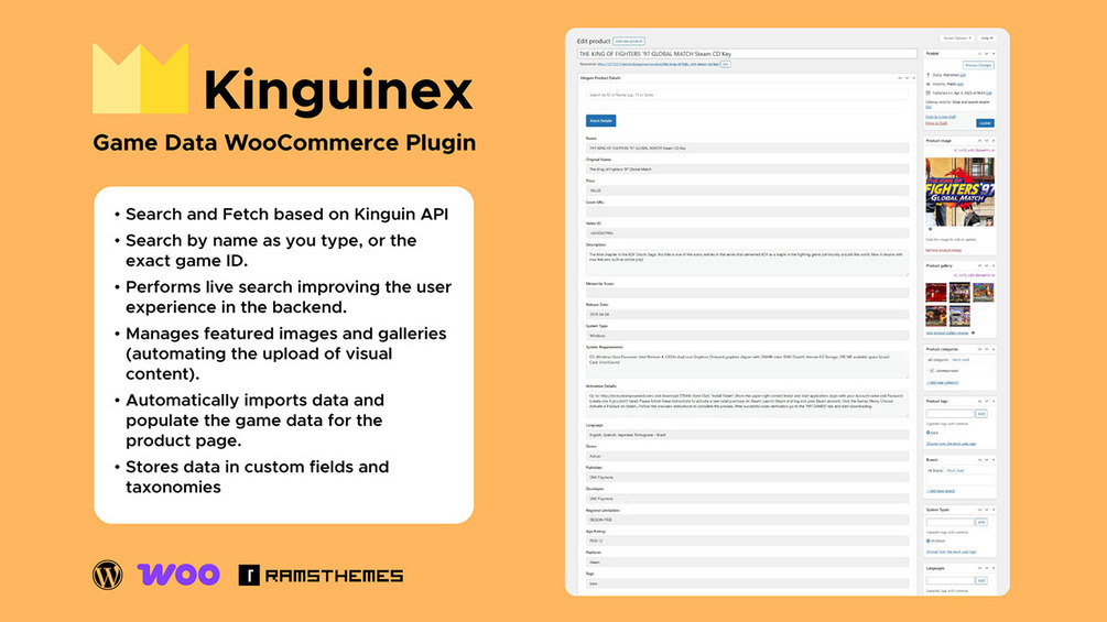 • Automatically imports complete data (saving manual work). Plugin only automatically populates the game data for the product page.